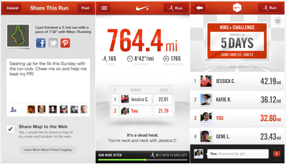 Ova aplikacija razlikuje se od ostalih najprije zbog toga što možete izazvati svoje prijatelje da istrče određenu kilometražu ili se možete natjecati protiv svojih prijatelja po broju pretrčanih kilometara. Klasično, aplikacija mjeri vrijeme, udaljenost i tempo trčanja.